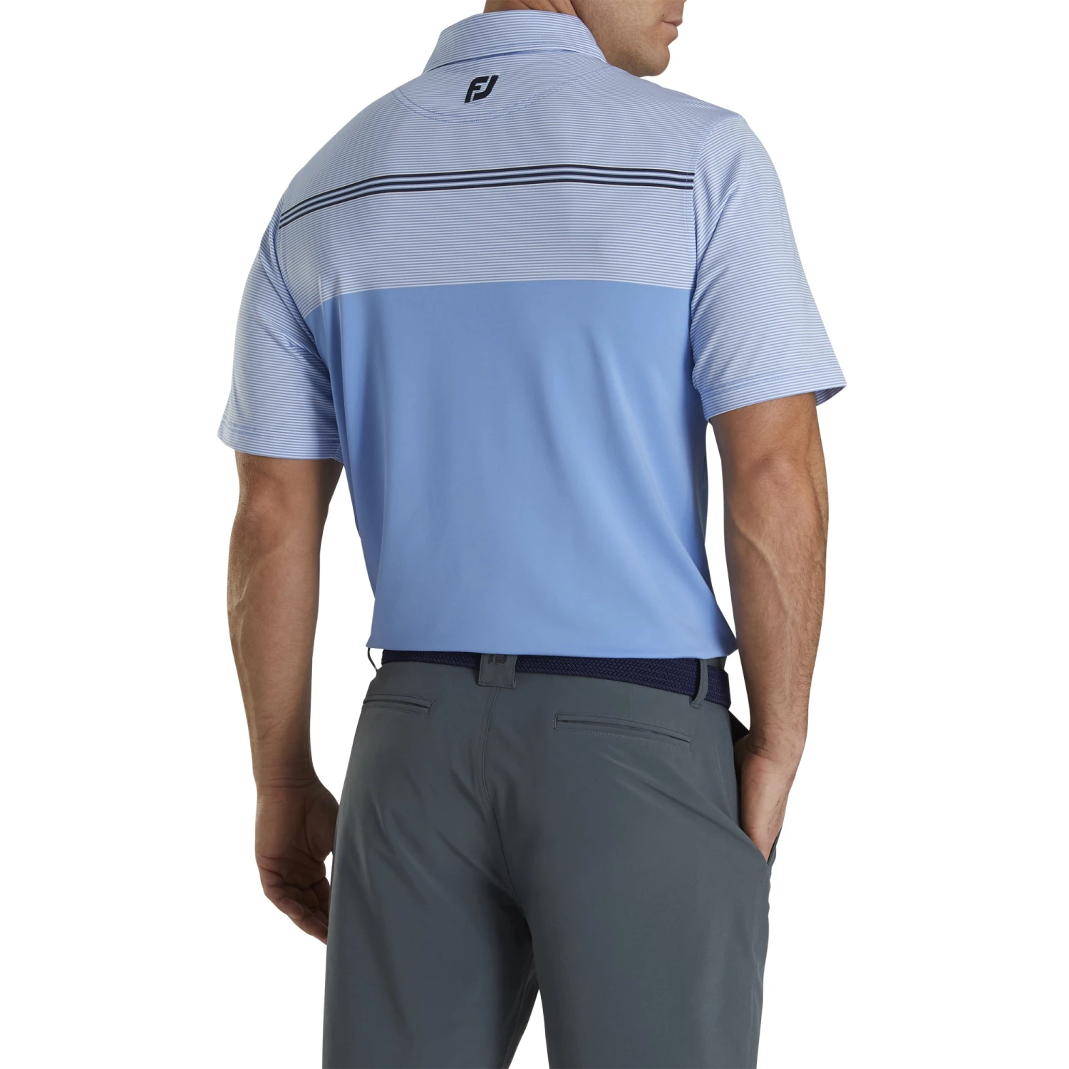 Stay dry and comfortable during your round with the FootJoy Lisle Engineered Pinstripe Self Collar Polo. This polo is built a high-performance ProDry fabrication that will quickly wick away moisture to keep you dry and comfortable and an anti-microbial finish will prevent odor buildup to keep you smelling fresh. A locked stitched hem provides a tailored look and double stitched seams make the Lisle Engineered polo highly durable. There is an extra-long back shirt tail which makes it super easy to tuck in.